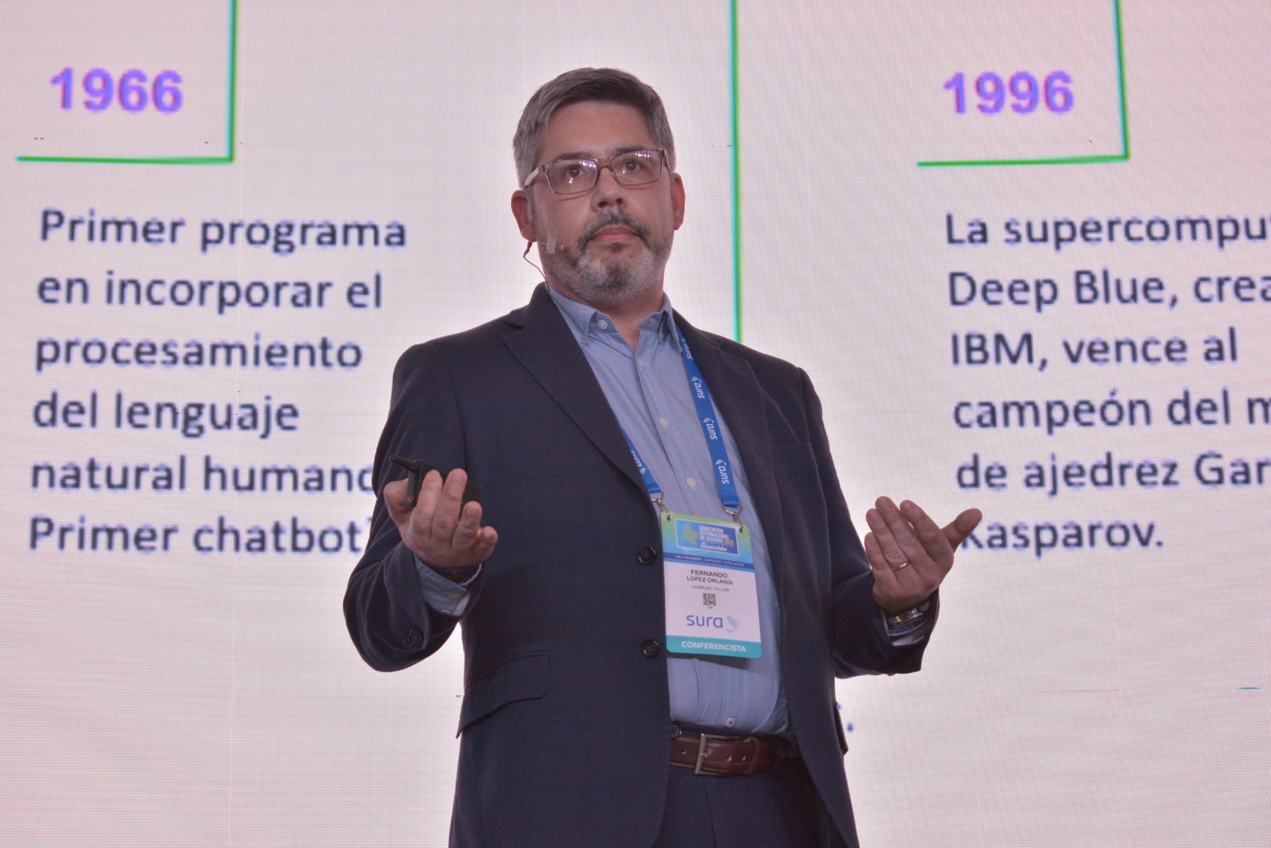 Resaltando que en los últimos 50 años la industria aseguradora latinoamericana ha crecido sostenidamente y se espera que en 2023 el mercado latinoamericano tenga un crecimiento de primas de 3,9 %, López afirmó que uno de los principales hitos en la historia de la IA fue la creación de un superordenador que aprende a identificar y reconocer imágenes.